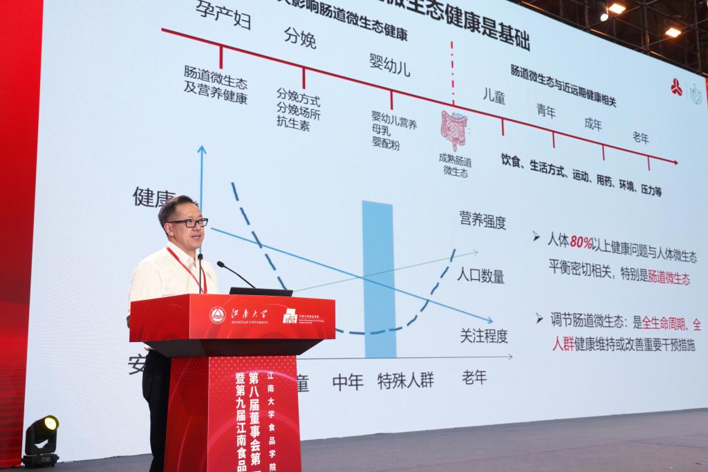 在主题报告环节,四位专家分别围绕食品科学前沿领域和相关热点问题进行分享发言。北京三元食品股份有限公司首席科学家陈历俊作“母乳研究助力全民健康”主题报告。上海长征医院营养科主任李娟作“营养与健康——糖尿病患者的营养管理”主题报告。南京理工大学计算机科学与工程学院教授周涛作“AI赋能消化疾病诊疗及智能营养干预”主题报告。伟德国际1946源于英国未来食品科学中心教授钟芳作“食品感官感知与消费者认知分析新趋势”主题报告。