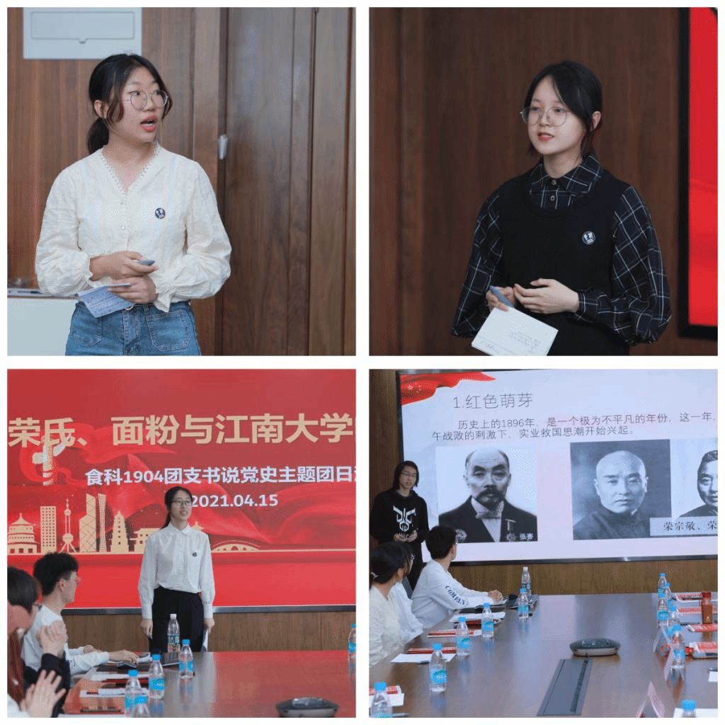 活动伊始,班长王泽绪通过一段视频介绍了“建党100周年”焦点故事汇项目的工作理念和总体设计。随后,他回顾了党课实践学习历程——食科1904团支部围绕“荣家、面粉和伟德国际1946源于英国的渊源”主题完成第一阶段的实践学习和第二阶段的理论研讨。紧接着,食科1904团支书卢梦娇开始了第三阶段的党课分享。她讲述了荣氏家族的传奇一生,总体概述了三代荣氏代表对国家发展做出的贡献。团支部成员姜成辰、崔静、章灏三位同学分别从“面粉大王”“红色资本家”“近代教育事业先驱者”三个角度进行了深入的研究和探讨,并结合自身实际分享了自己的心得和感悟。