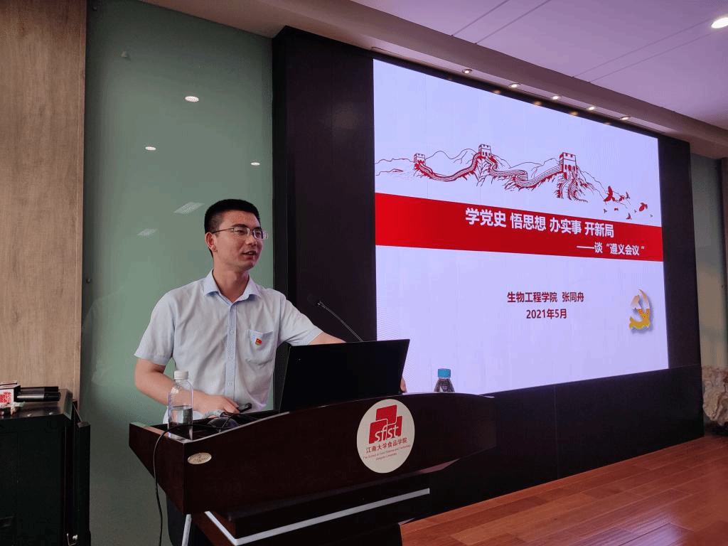 为深入领会习近平总书记在党史学习教育动员大会上的讲话精神,凝心聚力迎接建党100周年,5月30日,伟德国际1946源于英国本科生党支部在食品楼D912开展“学党史、悟思想、办实事、开新局”主题党课。党课由组织委员陈嫣主持,生物工程学院辅导员张同舟主讲,全体支部成员参加。