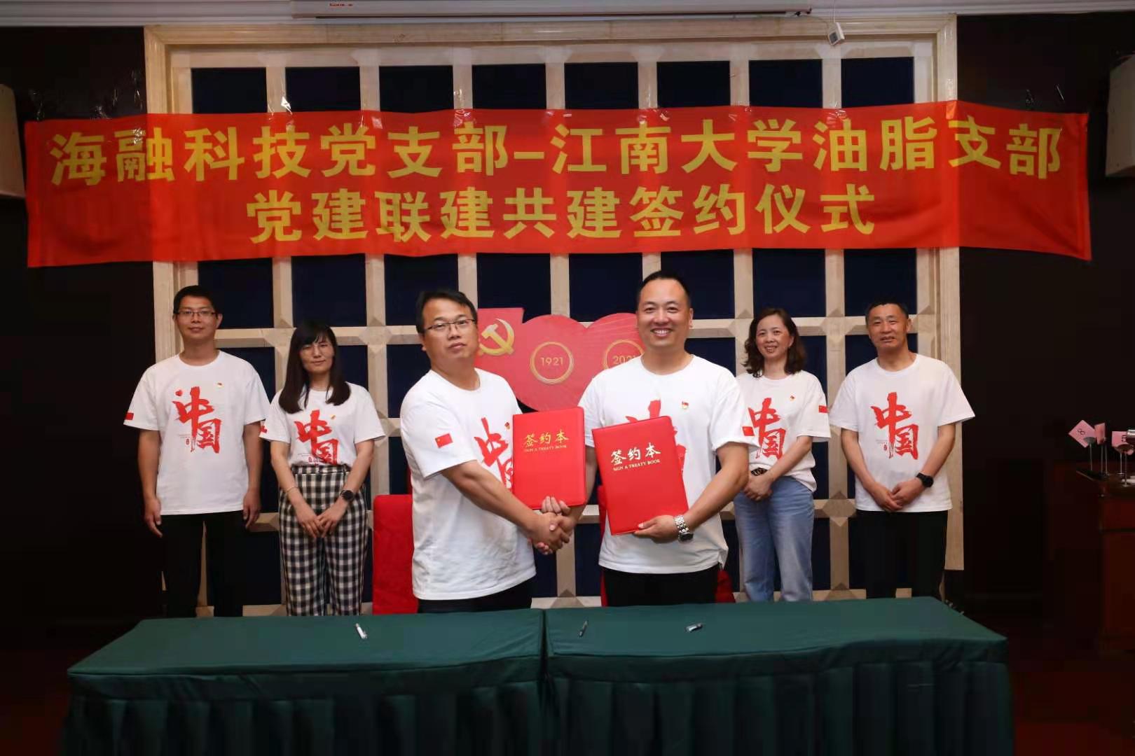 最后,海融科技党支部和伟德国际1946源于英国油脂与植物蛋白工程研究中心教师党支部开展党建联建共建协议签约仪式。仪式上,海融科技党支部书记叶金郁同志就海融食品科技有限公司党建工作、廉政建设、校企合作以及业务发展等方面进行了简要介绍。油脂与植物蛋白研究中心教师党支部书记徐勇将同志围绕党建成果、学科建设、团队研究、合作交流等方面,介绍了伟德国际1946源于英国油脂与植物蛋白工程研究中心党支部和脂质营养健康与绿色制造创新团队近年来的党建与科技研究成果。双方表示,今后将在党建工作的引领下,在党史学习教育、科技创新、人才培养等方面开展深入的合作交流,力求达到以岗带动、结对互促、双向发展、共同提高的效果。