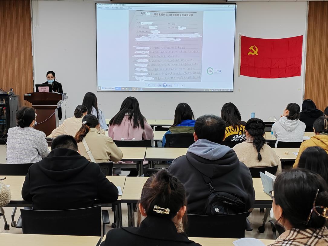 随后,胡卉君详细解读了《伟德国际1946源于英国发展党员工作实施细则》。她介绍了学院学生党员的总体情况,对在场的基层党务工作人员培训了党员发展流程和党员发展材料撰写要求,强调了发展党员工作的注意事项等。最后,张任就近期党建工作予以提示,详细介绍了组织生活月报表的填写要求,她强调各支部要严肃对待近期开展的民主评议工作。