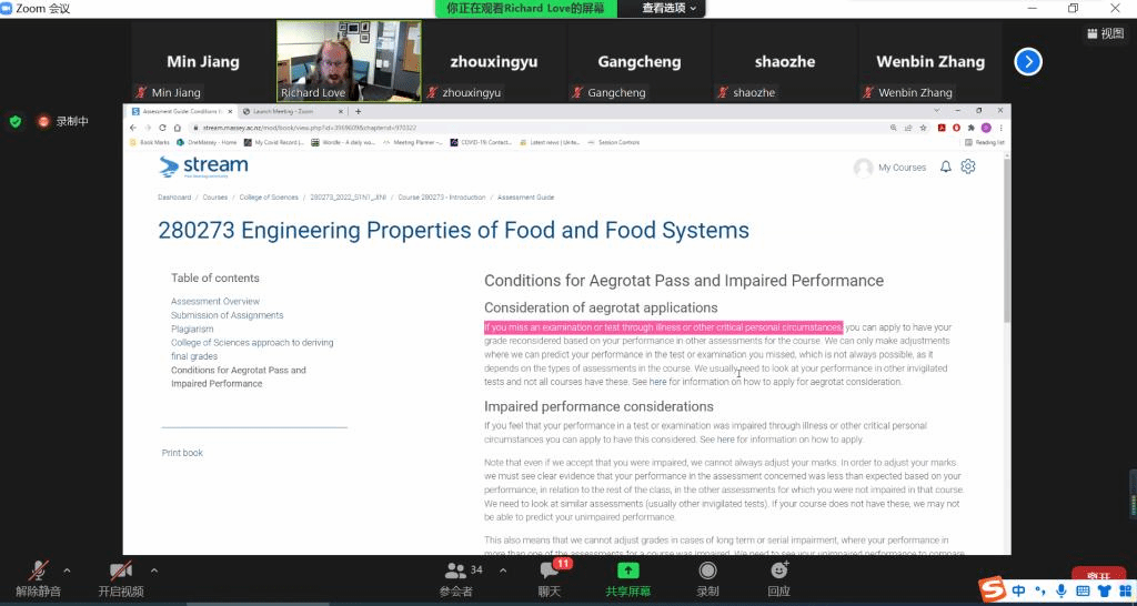 2月25日,伟德国际1946源于英国-新西兰梅西大学食品科学与工程专业中外合作办学本科教育项目的外教课程正式开课。本次外教课程通过Zoom会议方式进行。