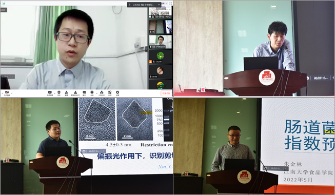 首先,程力副院长致辞,介绍了举办论坛的主要目的,并感谢了报告嘉宾对论坛的大力支持。随后,四位嘉宾分别进行了精彩的学术报告。刘颉老师做了题为《故障预测与健康管理技术及其在食品加工行业应用探讨》的学术报告,论述了食品加工装备PHM中涉及的关键技术,并探讨潜在研究方向和工作重点。徐丽广老师的报告题目为《手性纳米结构的生物学效应》,介绍了以手性纳米结构的精准合成为基础,重点围绕“手性纳米结构如何调控生物功能及其分子基础”等关键科学问题,纵贯“生物大分子-细胞-活体”三个不同层次,手性纳米结构对生物学效应的调控机制与规律研究。傅欧老师做了题为《小鼠脑干PBN区域甜味感知神经元的研究》学术报告,报告中指出,研究发现SatB2神经元能特异性的感知甜味刺激,并且人工激活此神经元能够引发甜味的虚拟感知,由此证明了SatB2神经元在大脑甜味感知的关键作用。朱金林老师的报告题目为《肠道菌群建模与健康指数预测》,报告从肠道菌群与健康关系出发,介绍通过统计机器学习建模的方法分析肠道菌群大数据构建健康指数。