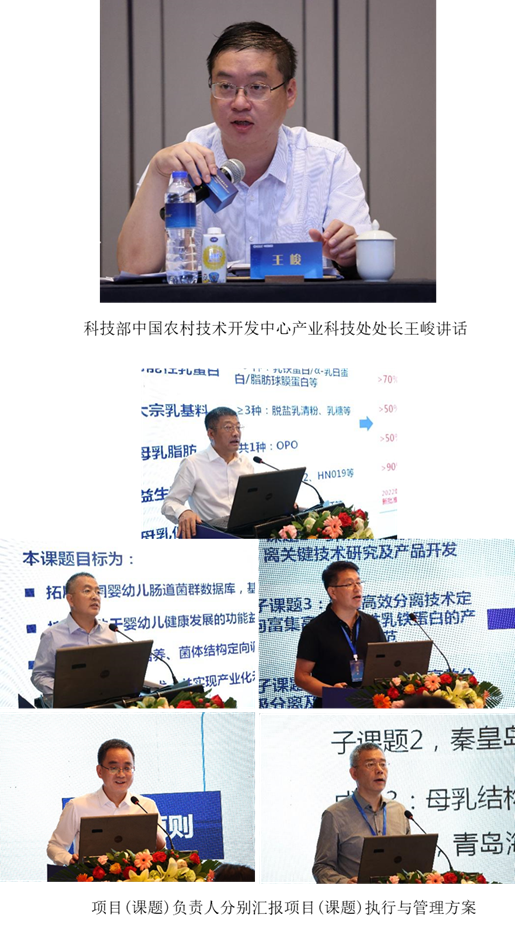 王峻处长在讲话中强调,食品与物流专项的实施以智能、节能、绿色、可持续为核心,面向经济主战场来延伸产业链、拓展价值链,提升食品制造水平、从而支撑食品产业高质量发展。本项目旨在聚焦婴幼儿配方奶粉的乳品核心配料,突破配料制备难题,减少进口依赖,促进我国婴配乳品产业健康发展。项目和课题承担单位要严格执行各项管理规定,认真落实项目承担单位责任。项目牵头单位与项目负责人要落实“绩效四问”精神,加强组织谋划,提升交流频效,强化资源共享、成果对接,凝练关键标志性成果;根据自身特点,开展科技成果转化落地“进园入县”;进一步落实法人责任制,加强精细化管理,真正做到心中有数、行动有方;加强科研诚信和学风建设,营造风清气正的良好科研生态。项目实施过程中各参与单位需要齐心协力、扎实工作,确保高质量、高标准的完成好各项研究任务。