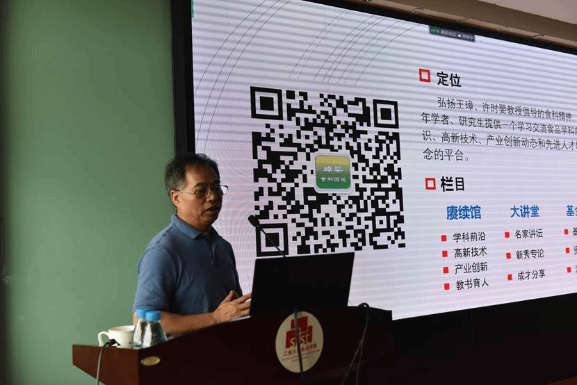 首先,钟芳教授介绍了伟德国际1946源于英国食科教育发展基金开办“璋婴大讲堂”名家讲坛活动的初心和目的,希望通过搭建活动平台,将王璋、许时婴教授秉持的食科精神传承发扬,为青年学者为学、为人、为师树立楷模榜样。