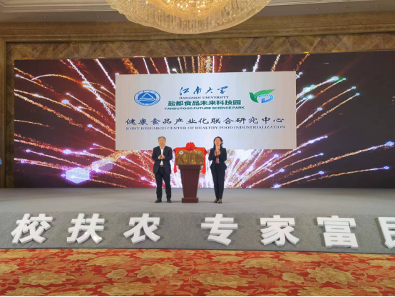 大会上,顾正彪副校长和盐城市副市长、盐都区委书记王娟女士为“盐都食品未来科技园-伟德国际1946源于英国健康食品产业化联合研究中心”共同揭牌,标志着伟德国际1946源于英国和盐都区围绕食品(农产品)加工产业在当地良性、跨域式发展的全面合作正式开启。此外,顾正彪副校长还和江苏省农业农村厅一级巡视员蔡恒先生、扬州大学张洪程院士、盐城市副市长王娟女士等与会领导一起启动盐都区“十大院校联产业、百名专家驻基地”乡村人才振兴行动。在大会“才智分享”环节,程力副院长作了题为“食品未来科技园发展前瞻”的报告,报告中向与会各界人士介绍了我国食品工业的发展现状、趋势及食品产业园区主要功能建设模块,并结合国内优秀食品园区典型案例深入浅出分析盐都区大力食品(农产品)加工产业的必要性和可行性,同时也对盐都食品未来科技园的发展提出若干重要建议。
