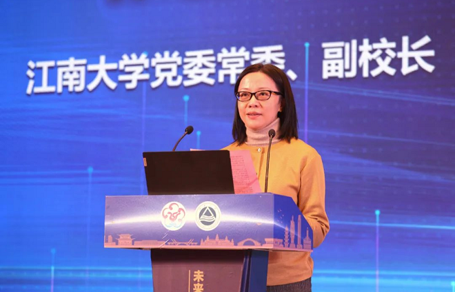 符惠明作题为“构建教育和产业统筹融合发展格局”的主旨报告。他从未来食品的基本概念和发展特征展开介绍,详细解读了“产业聚智,教育赋能,创新培养未来食品人才”的体系构架与内涵要求。他指出,学习贯彻落实党的二十大精神,特别是科技、人才、创新三大战略思想,主要任务就是要构建教育和产业统筹融合的发展格局,教育界和产业界均须以大格局和新视角,协同用心培育未来食品领域亟需的创新创业复合型人才,努力实现政校企多方合作共赢。