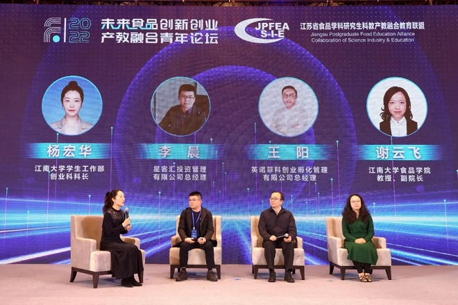 论坛的最后环节是未来食品创新创业圆桌会议。南京星客汇投资管理有限公司总经理、大学生创新创业竞赛资深评审李晨,苏州英诺菲科创业孵化管理有限公司总经理、大学生创新创业竞赛资深评审王阳,伟德国际1946源于英国副院长、互联网+国赛获奖项目指导教师谢云飞等专家出席会议,共话未来食品创新创业人才培养。学生工作部杨宏华主持该环节。