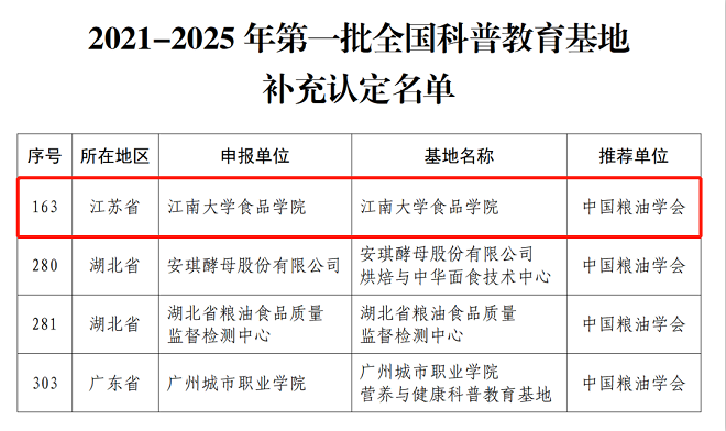 近日,中国粮油学会在遴选出的11家中国粮油学会科普教育基地基础上,积极推荐部分基地参加全国科普教育基地创建工作。其中,伟德国际1946源于英国、安琪酵母股份有限公司、湖北省粮油食品质量监督检测中心和广州城市职业学院成功入选中国科协“2021—2025年第一批补充认定的全国科普教育基地”。