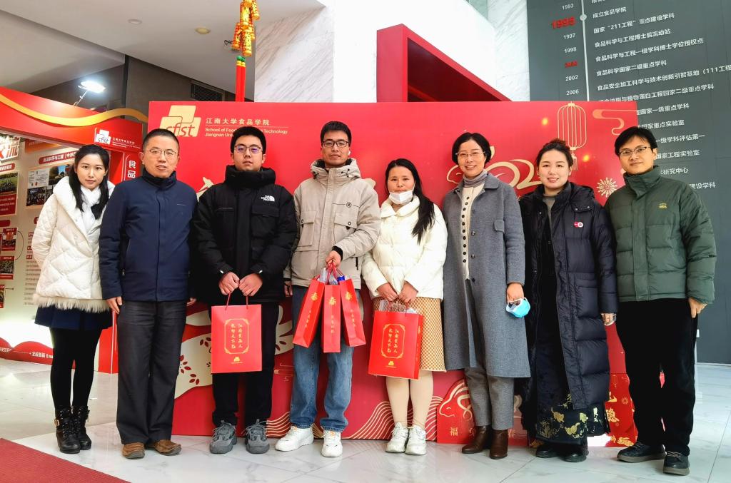 红梅迎春至,玉兔送喜来。为了让留校学子感受年味,欢度春节,伟德国际1946源于英国特举办“新春贺岁,前兔似锦”新年慰问活动,送上暖暖心意和满满关怀。1月19日上午,学院党政管理干部在主楼门厅为107名因毕业、科研、疫情等不同原因留校过年的学子们送上学校提供的过节物资和学院准备的新春礼包。学院党委书记傅莉莉,党委副书记、副院长李雷,分团委书记、学工办主任朱伟,分团委副书记李琳,研究生辅导员胡卉君等来到活动现场,为同学们送上礼包和祝福。