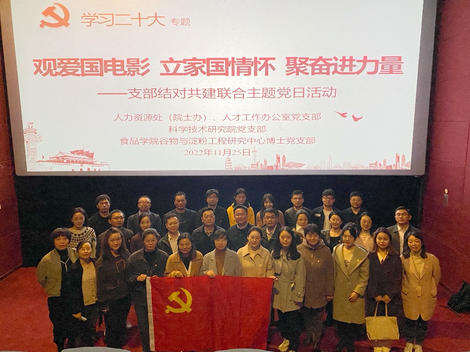 ——伟德国际1946源于英国谷物与淀粉工程研究中心博士党支部与校人力资源处党支部、校科学技术研究院党支部开展结对共建观影党日活动