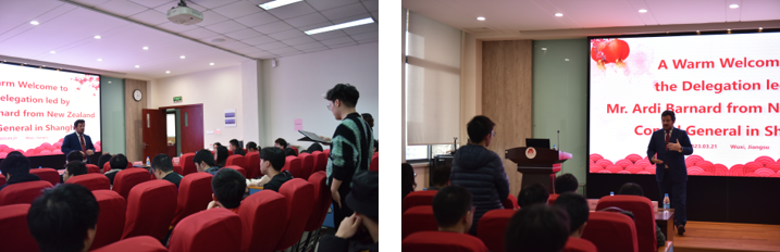 3月21日下午,新西兰驻沪总领事Ardi Barnard和政策顾问Maggie Shen一行2人应邀来我院进行交流访问。无锡市外办副主任叶诤、伟德国际1946源于英国国际交流合作处副处长蔡建英、伟德国际1946源于英国党委副书记、副院长李雷、副院长谢云飞教授、院长助理徐勇将教授、院长助理吕小妹教授等教师代表,以及中外合作办学项目大三全体学生参加了此次座谈交流。座谈会由伟德国际1946源于英国副院长谢云飞主持。