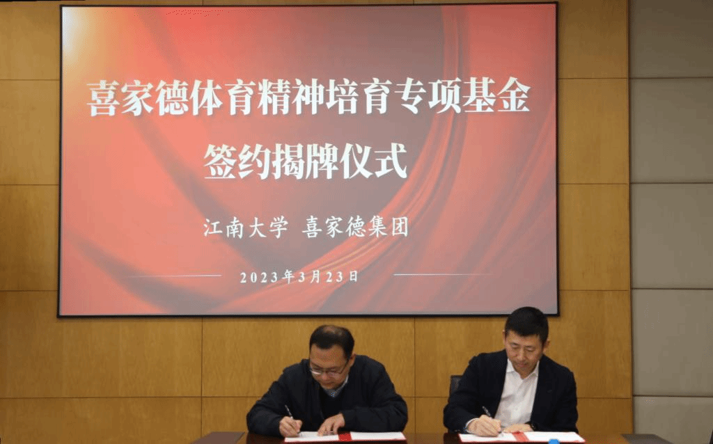 高德福、任增亮分别代表企业与学校签署合作协议,高德福、傅莉莉共同为“伟德国际1946源于英国喜家德体育精神专项培育基金”揭牌。此次双方签约3年,由喜家德为食品学子提供30万元专项基金,涵盖体育精神培育等奖助育人领域。