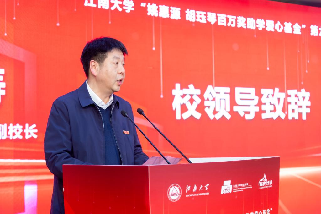 倪松涛首先向以姚惠源教授为代表的所有爱心人士致以衷心的感谢,向获奖同学表示热烈的祝贺。他指出,“姚惠源∙胡珏琴百万奖助学爱心基金”充分发挥着“立德树人”作用,滋养了一代代食品学子成长,激励师生赓续发扬“江南食品人,敢为天下先”的精神。他希望伟德国际1946源于英国倍加珍惜姚老师这位宝藏老人的爱心与动能,接续奋斗,创造价值;希望获奖学子不忘初心,勇担使命,在江南的沃土上栽满希望的种子,在青春的岁月中刻下无悔的足迹。