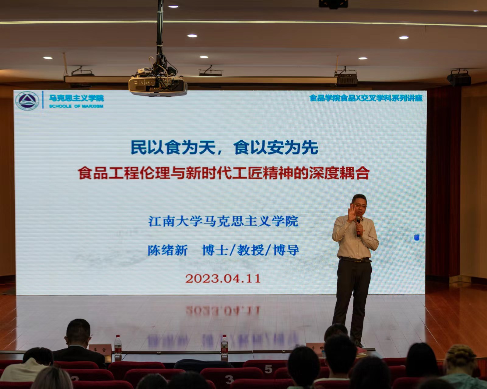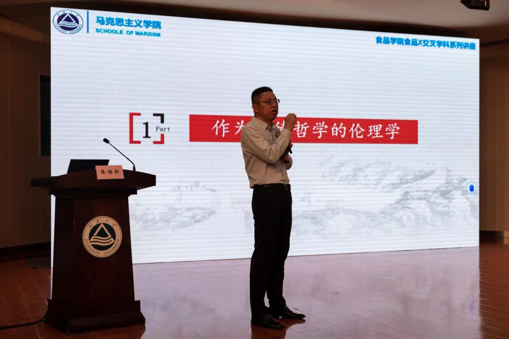 4月11日下午,“食品X”交叉学科系列讲座在北区大学生活动中心再次开讲。本次活动邀请到马克思主义学院博士生导师陈绪新教授作题为《民以食为天,食以安为先——实现食品工程伦理与新时代工匠精神的深度耦合》的报告。伟德国际1946源于英国党委副书记、副院长李雷,分团委副书记李琳及380余名食品学子参加活动。2020级本科生辅导员王文燕担任主持。