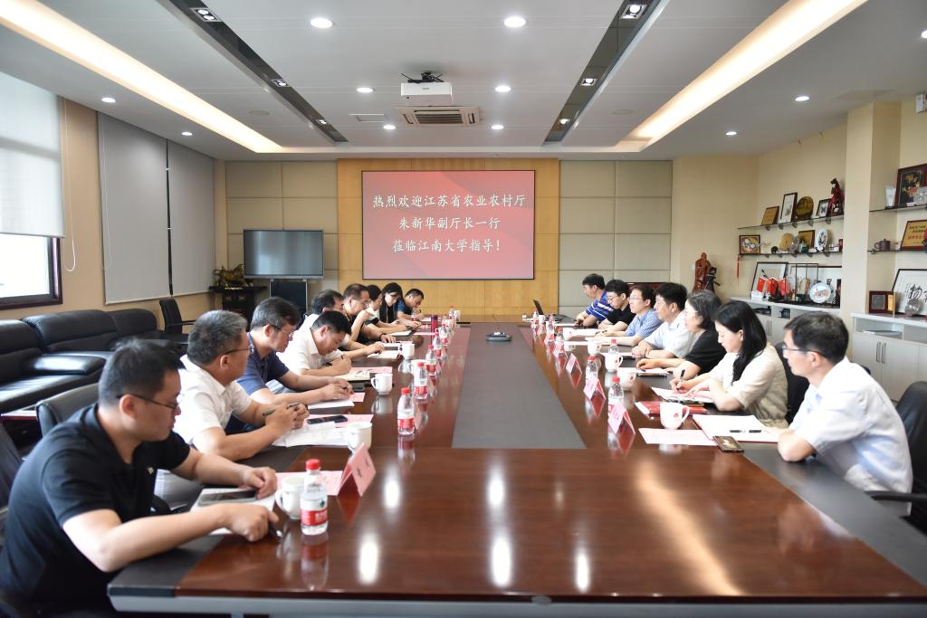 会上,倪松涛副校长对朱新华副厅长一行来访表示热烈欢迎,介绍了学校近年来的发展概况,并重点介绍了学校的科研成就和学科建设情况。王立院长主要介绍了学校横向科研情况、学校技术转移创新模式以及食品学科科研情况。随后,朱新华副厅长介绍了当前江苏农产品加工行业的现状,希望通过加强政校企合作,精准对接科研成果,快速落实应用转化,系统性提升服务水平,让江苏省农产品加工产业更快更好地成长起来。随后,双方就如何推进农产品强省建设的问题进入了深入探讨。