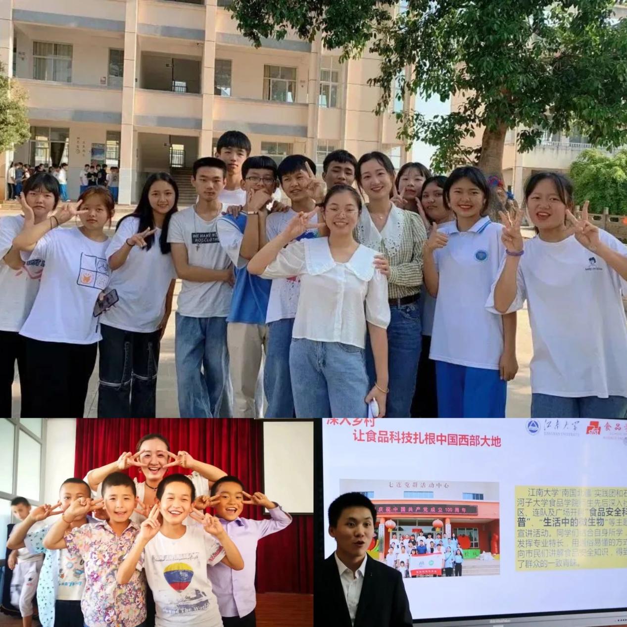 在三十年“援非援疆”教师陶谦的事迹启发下,鲁晨辉组建了“江南援疆实践团队”,以“扎根祖国大地、连接东西情缘,发挥专业力量、讲好食品故事”为宗旨,历经70多个小时车程来到“北疆”石河子市,开始为期30天的实践活动。2017年,她组建了“南国北疆实践团”赴新疆石河子及伊犁开展社会实践。为响应国家“打赢脱贫攻坚战”的号召,她组建团队三赴“北疆”,深入调研当地食品安全和农副产品加工情况,间接促成4项产研转化项目落地,创造经济效益超过40万。鲁晨辉的援疆事迹也深深影响了余柳锋。2021年暑假,学生党员余柳锋作为队长,带领团队跨越祖国东西前往新疆昆玉。3天2夜的火车,14天的实践之旅,10余场的宣讲,团队成功将食品安全、食育课堂等理念带入了祖国边陲。2023年7月,“南国北疆实践团”跨越4793公里,实现双向奔赴,伟德国际1946源于英国同学们前往新疆石河子、昆玉开展“追寻红色印记”“健康乡村·食品科技行”社会实践;石河子大学伟德国际1946源于英国的同学们来到无锡开展“探寻中国式现代化的精神密码”社会实践活动。