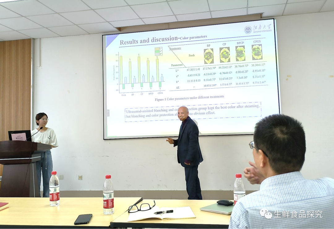 随后,Benu教授参加了生鲜食品加工与保鲜团队的月度英文科研汇报活动,10名博士/硕士研究生就个人承担课题的研究进展进行了汇报交流。各位教授对课题研究过程中发现的问题,有针对性地提出了意见和建议。在本次面对面的英文科研汇报活动中,各位参与人员都很积极活跃,进行了高效的交流互动和充分的问题探讨。本次学术交流会议的召开,为同学们在课题开展过程中所暴露的问题进行了及时的发现和指导,同时也为现阶段实验室整体学术水平的提升起到了重要的促进作用。
