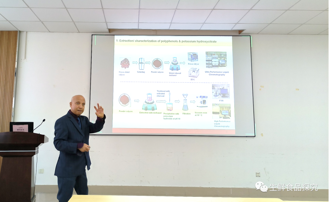 在公开学术报告会上,Benu Adhikari教授作了题为《Extraction, characterization of phytochemical from Roselle (Hibiscus Sabdariffa) for potential application in managing obesity》的学术报告,重点介绍了玫瑰茄中多酚和羟基柠檬酸的提取与表征、多酚提取物对α-淀粉酶、α-葡萄糖苷酶和胰脂肪酶的抑制作用、多酚提取物和羟基柠檬酸钾在抑制人脂肪来源干细胞脂肪生成方面的潜力、通过包封改善酚类化合物的抗氧化和释放性能。