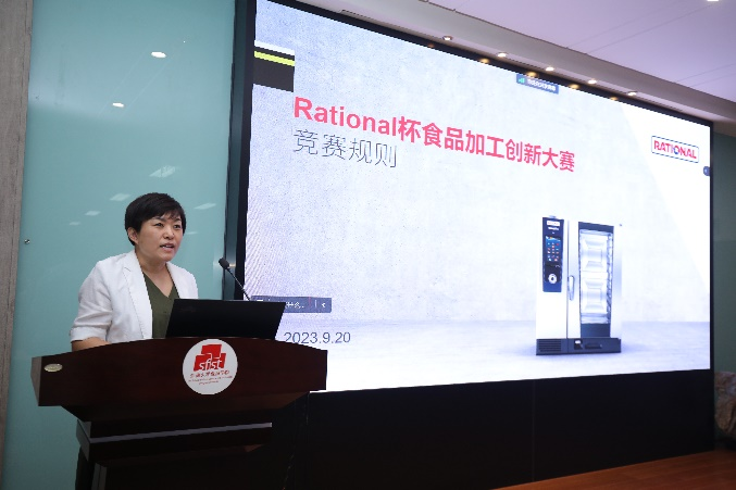 唐学燕作为企业代表,也是伟德国际1946源于英国2万名校友中的一员,详细解读了大赛的主题、宗旨、规则、流程、奖项等。她介绍道,46年烹煮研究、600多项专利、120多万台设备、超过50%的市场份额,使Rational成为全球专业厨房中的标准烹饪系统。她叮嘱同学们将理论知识精准转化为生产工艺和创新实践,在遵循科学规律、洞悉市场风向、发挥创意灵感的基础上设计出兼具创新性、营养性、商业可行性的全链条作品。