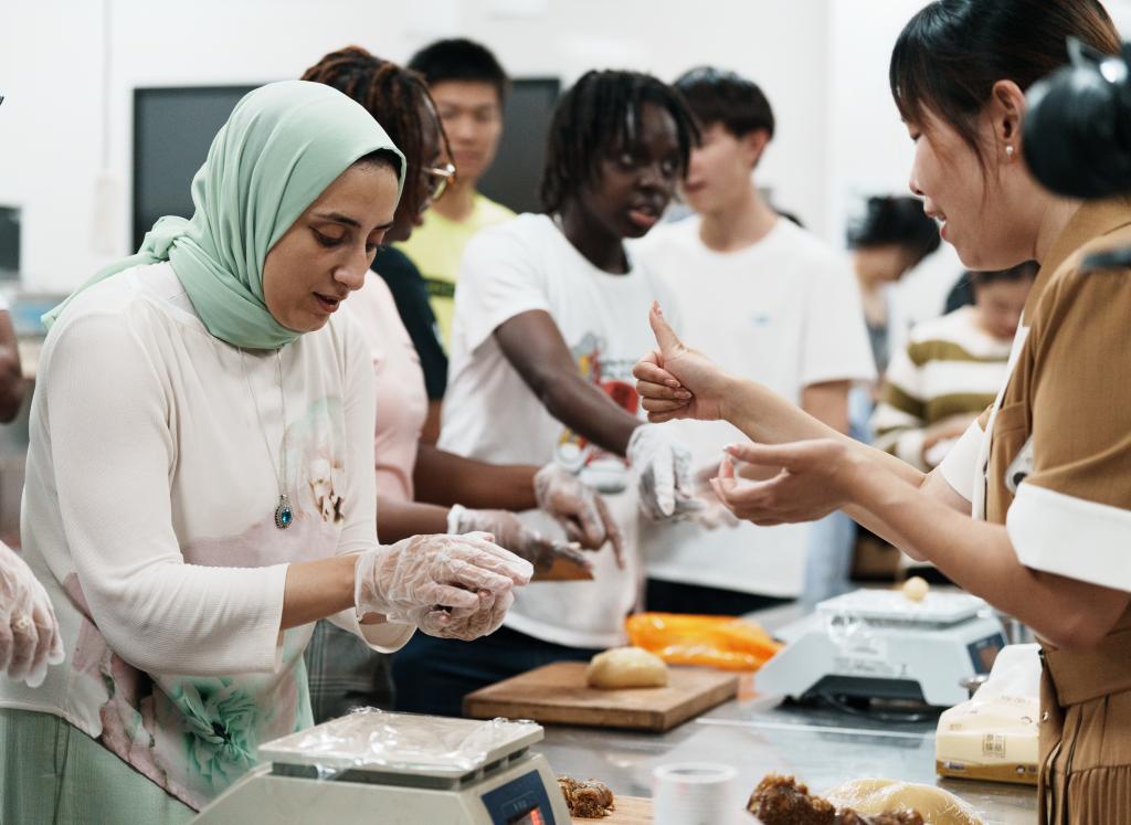月饼圆圆,满载团圆心意,玉兔虽小,可解游人乡愁。和水,揉面,备馅,压模。“叮咚”一声,金黄的月饼就新鲜出炉啦!在伟德国际1946源于英国五大俱乐部指导下,由中外师生亲手制作了清香五仁、咸香肉松、冰激凌莲蓉、巧克力留心和芋泥奶酪五种口味的月饼。红色玉兔作为礼盒主体,彰显中秋节日主题,“月满江南",寄托了对每一位江南师生最真挚的节日祝福!