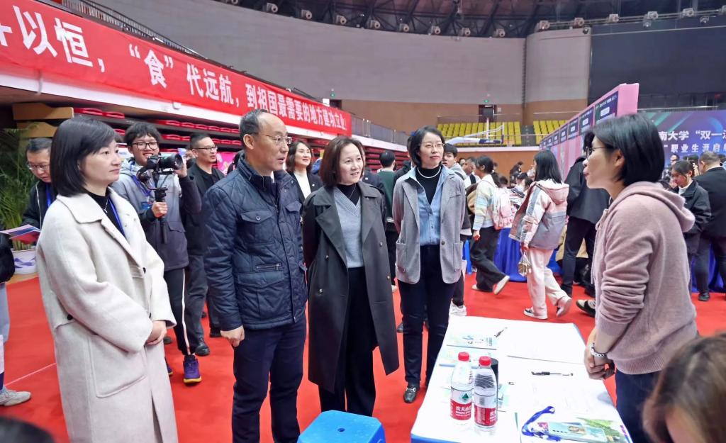 生物工程学院2024届硕士研究生呼子暄作为毕业生代表回顾了在母校接近七年的求学岁月,感念学校、学院从本科到研究生期间全面细致的教育培养。时值求职季,在人生选择的十字路口,全体毕业生必定坚持“祖国的需要就是我的第一志愿”,将个人发展融入社会主义现代化事业的建设中,建功新时代。开幕式后,相关领导一同前往各招聘展位,与用人单位进行充分交流,详细了解企业的用人需求,同时还与求职学生亲切交流,给予就业指导,鼓励大家树立正确的就业择业观念,抓住应聘的黄金时间段,精准分析自身情况,努力与企业实现“双向奔赴”。