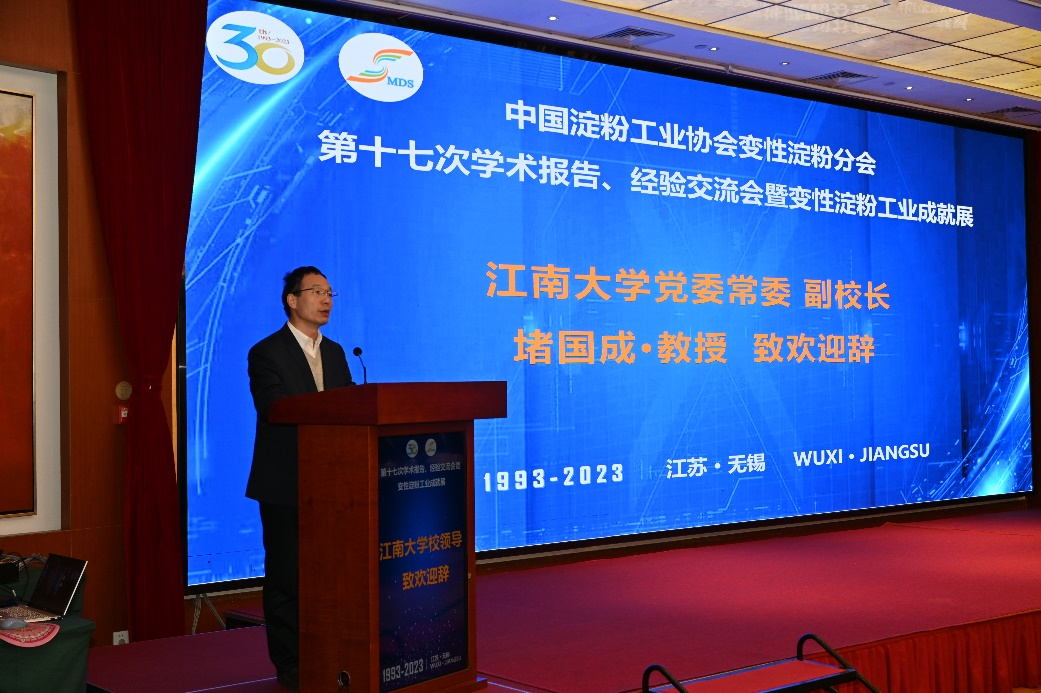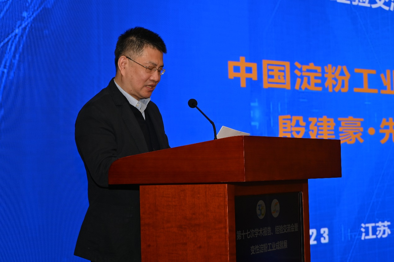 堵国成在开场致辞中热烈欢迎前来参会的业界各位代表。他充分肯定中国淀粉工业协会变性淀粉分会作为一个重要的行业组织,在分会原主任、伟德官网食品学科元老吴嘉根教授等前辈的传承下,在伟德国际1946源于英国多年从不间断的支持下,在现任会长顾正彪及其带领团队始终不渝的努力下,坚持加强和完善分会的服务职能,为该领域在科研、生产、应用等方面搭建了重要的沟通交流平台。他进而指出,淀粉工业是我国食品工业的重要组成,在保障粮食安全、提升产业竞争力和落实“大食物观”等方面发挥着不可忽视的作用,希望分会继续发挥其搭建校企合作的桥梁作用,建立技术对接的主阵地,为我国食品工业发展贡献应有的力量。