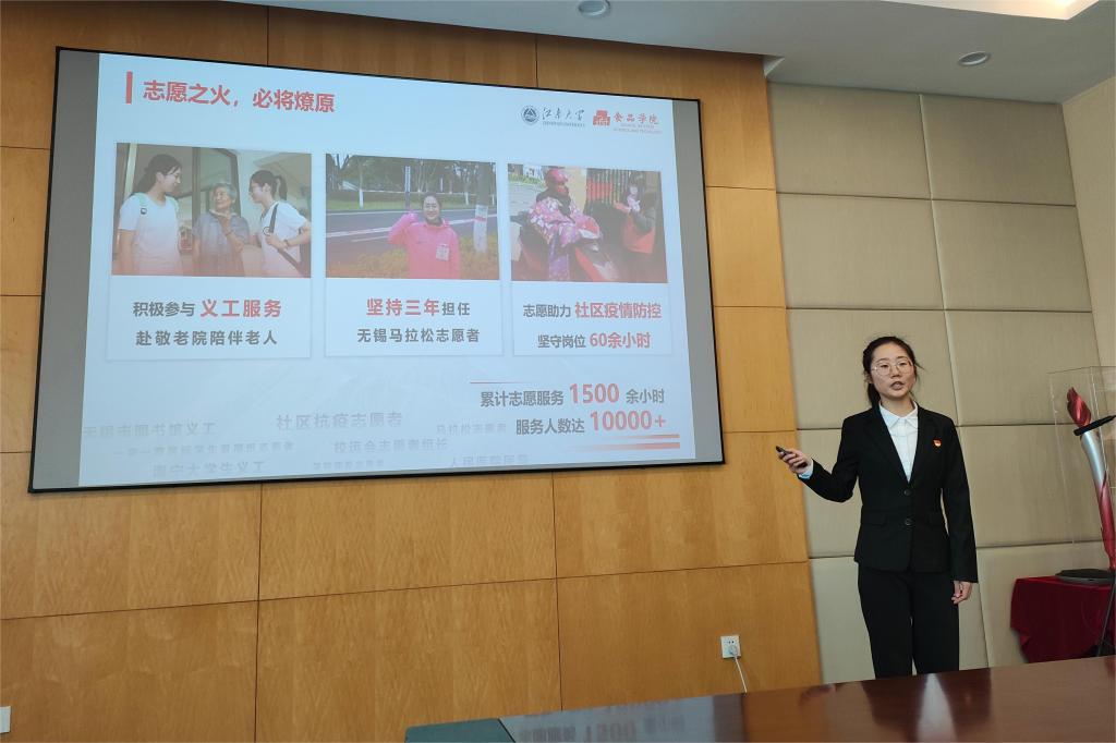 经个人申请、资格初审等前期环节,共有来自本硕博相关年级的28名优秀学子进入答辩阶段,竞争7个最高奖名额。答辩开始后,各位候选人按照抽签顺序依次登台,从学术科研、创新创业、社会实践、文体活动等不同领域展示在校期间的收获与成果,并深入阐述对食品精神的理解与感受。评选过程中,各位评委认真听取候选人的自我陈述,并结合其特点进行提问。