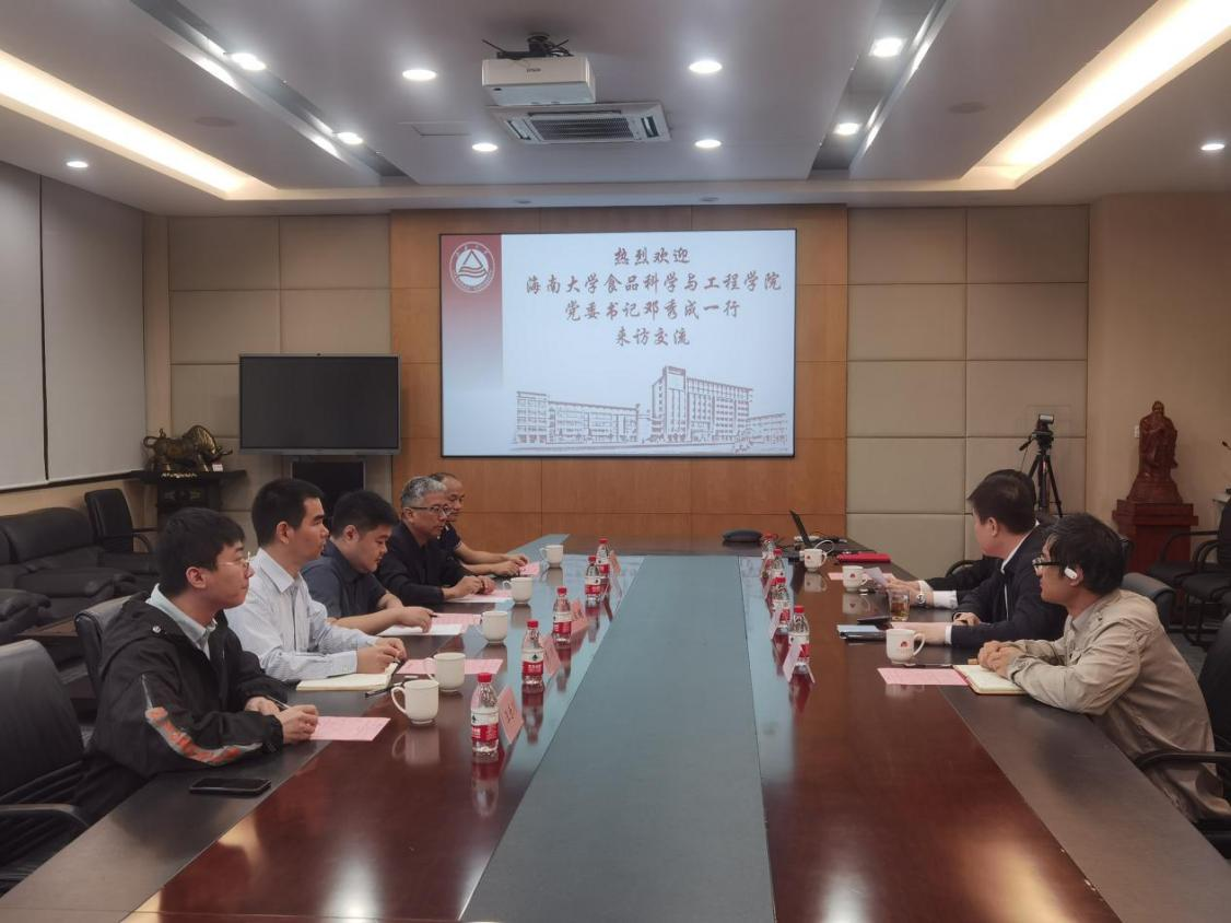 4月12日上午,海南大学食品科学与工程学院党委书记邓秀成,主持工作副院长张家超,副院长李川,副教授王露、汪乐川来伟德国际1946源于英国交流访问。我院院长范大明,副院长翟齐啸,实验室主任王文龙,党委秘书、专职组织员朱伟接待来访。