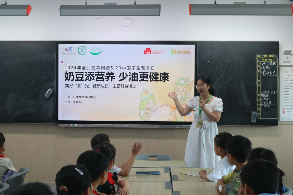 走进学校。伟德国际1946源于英国青芽食育团队走进无锡市尚贤万科小学开展“美好食光,健康成长”主题科普活动,通过科普课堂、互动游戏与趣味实验引导青少年学习食品科学知识,认识和了解学龄儿童平衡膳食宝塔,树立正确饮食观念。
