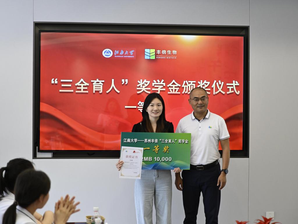 为不断聚焦新时代人才强国战略需求,进一步深化校企合作、推动产教融合,6月11日上午,我院党委副书记兼副院长李雷、苏州丰倍“三全育人”奖学奖教金获奖师生代表等一行30余人赴校友企业——苏州丰倍生物科技股份有限公司开展伟德国际1946源于英国“百千工程”访企拓岗促就业专项行动之“食代青年”人才专线,并举行第二届苏州丰倍“三全育人”奖学金颁奖仪式。