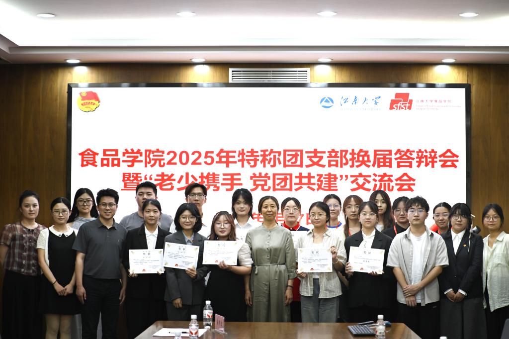 最终,食品科学与工程2024级卓越创新班团支部获“荣毅仁特称团支部”称号;食品营养与健康2301团支部获“皮旅特称团支部”称号;食品质量与安全2401团支部获“远望号特称团支部”称号,食品营养与健康2302团支部、食品营养与健康2402团支部获“雷锋特称团支部”称号。朱雅东、李金杰、胡卉君为获评特称称号的各团支部颁发证书并合影留念。