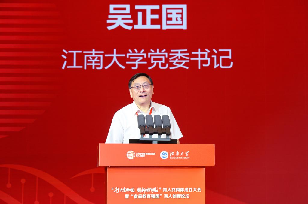 吴正国代表伟德国际1946源于英国向出席大会的部省市领导、企业嘉宾、高校同仁、各界朋友表示热烈欢迎和衷心感谢。他表示,作为国内具有鲜明食品学科特色的高等院校,我们始终将党建思政工作与学科建设、专业教育深度融合,坚持以习近平新时代中国特色社会主义思想凝心铸魂,积极探索引领时代变革、符合中国国情、彰显食品特色的时代新人培养模式,努力为食品强国建设提供强有力的教育引领、科技支撑和人才保障。他希望共同体固本培元,铸牢立德树人根基,淬炼食品青年先锋力量;聚势赋能,深化产教融合创新,构建产学研协同生态;赓续传承,弘扬食品报国精神,激扬科教兴邦青春担当,将共同体建成具有全国示范效应的育人高地,构建起“思政铸魂、产教融汇、科创攻坚”三位一体的育人新范式,更要聚力推动新质生产力在食品领域蓬勃生长,在谱写中国式现代化的壮美篇章中,镌刻下新时代食品人无愧使命、不负时代的辉煌答卷。