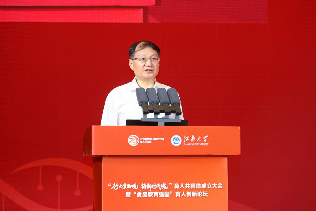 金征宇作题为《食品·生命·未来 践行大食物观 赋能教育强国 培养一流人才》的大会报告,深刻理解教育强国建设的战略地位,阐述大食物观内涵及食品智能制造、合成生物学等高新技术,分享“大食物观”育人实践案例,呼吁共同体成员以教育创新夯实人才根基,为全球粮食安全与人类健康贡献中国方案。