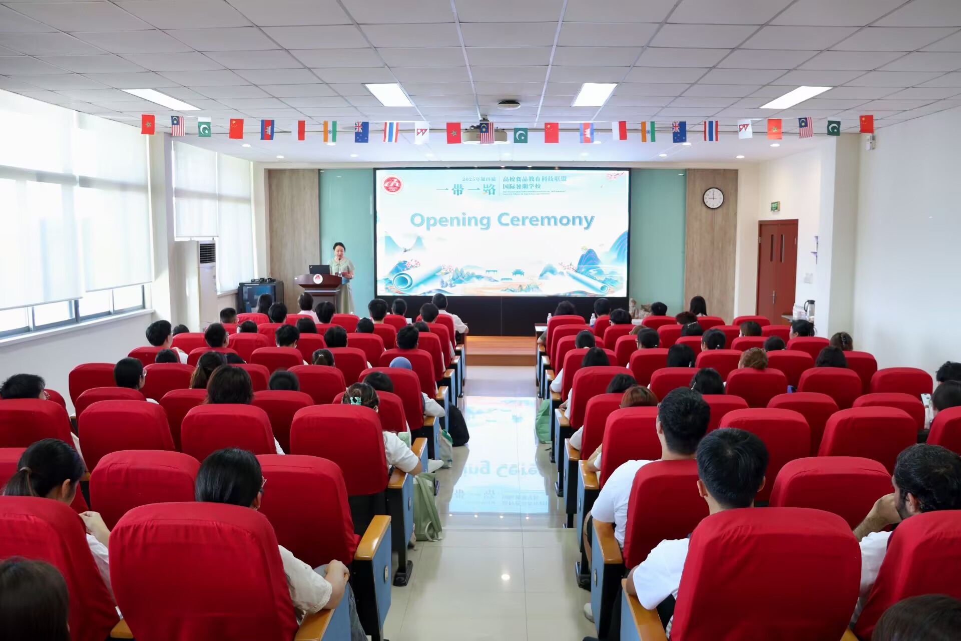 7月7日上午,2025年第四届“一带一路”高校食品教育科技联盟国际暑期学校开营仪式在伟德国际1946源于英国D912报告厅举行。党委常委、副校长堵国成,国际交流合作处处长倪晔,伟德国际1946源于英国党委书记傅莉莉,副院长谢云飞、常明,院长助理吕小妹等出席仪式。仪式由谢云飞主持。