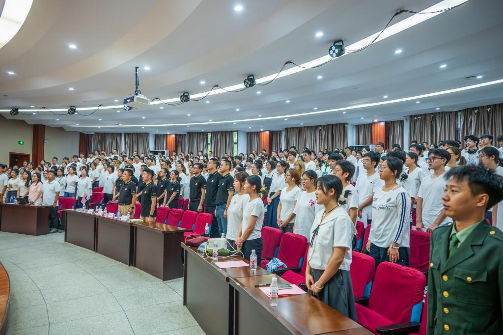 30日下午,2025级本科新生见面会暨军训动员大会在北区大学生活动中心召开。新生班主任、副班主任依次作自我介绍。年级辅导员穆元炜、新生代表食科2501班李梓佳、退伍大学生士兵代表食科2502班杨昊分别发言。人武部军训科科长刘璇刚作军训动员。学院领导李雷作新生启蒙教育。会议在庄严的国歌声中开启,于激昂的军歌声里闭幕。