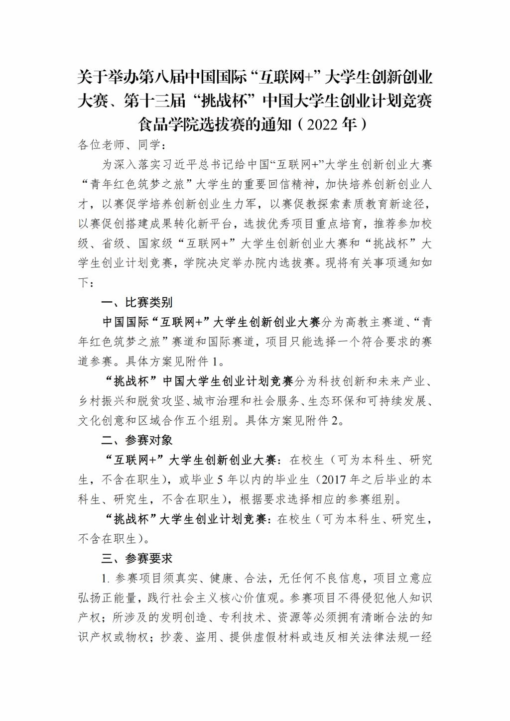 关于举办第八届中国国际“互联网+”大学生创新创业大赛、第十三届“挑战杯”中国大学生创业计划竞赛伟德国际1946源于英国选拔赛的通知(2022 年)