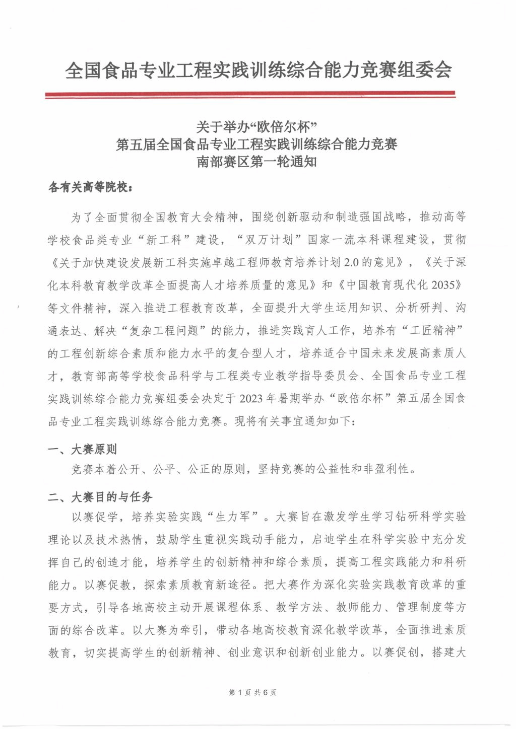 “欧倍尔杯”第五届全国食品专业工程实践训练综合能力竞赛